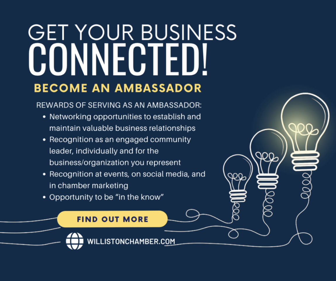 Tell us more about you and what you hope to learn about Williston and we will connect you with a Chamber Ambassador.